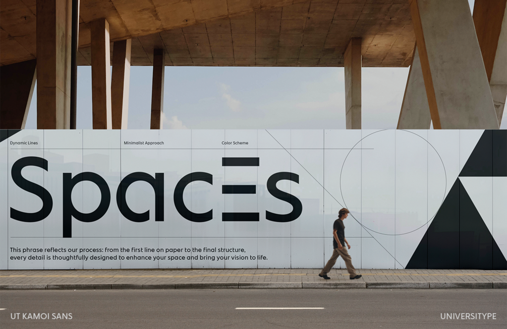 UT Kamoi Sans draws from two distinct yet complementary influences: the graceful curves of Japanese Hiragana and Katakana scripts and the structured precision of architectural floor plans.